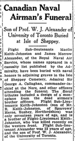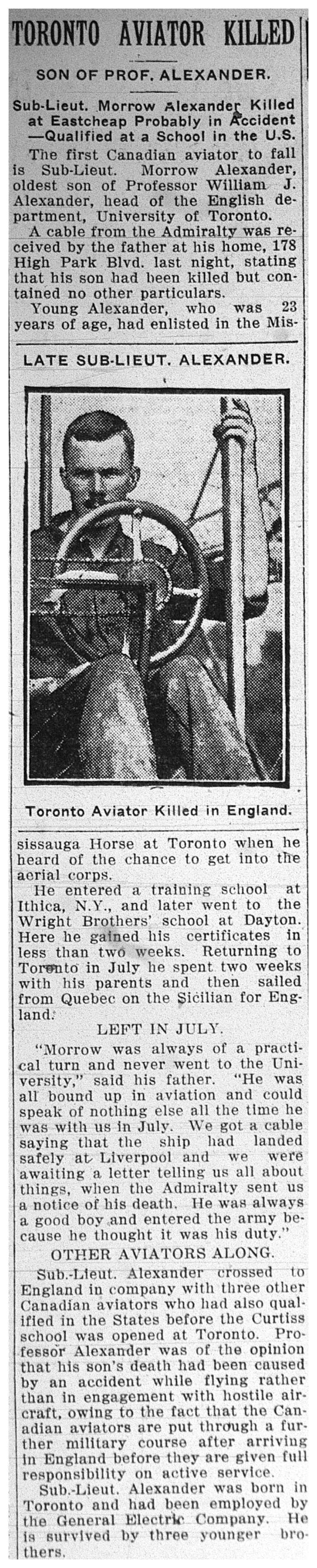 Son of William John and Laura Morrow Alexander, of Toronto, Ontario.
