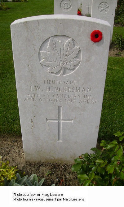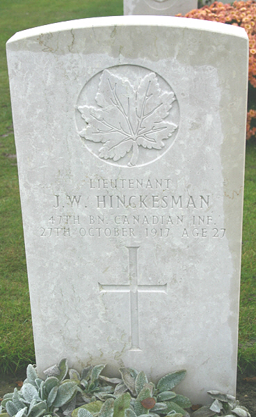 Son of John William Hinckesman, of Hadley, Droitwich, England. Husband of Eva C. Hutchison (formerly Hinckesman), of Greenock, Scotland.