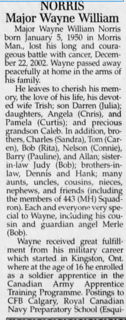 Husband of Patricia Lynn (nee Barker) and father of Darren, Angela and Pamela of Victoria, British Columbia.