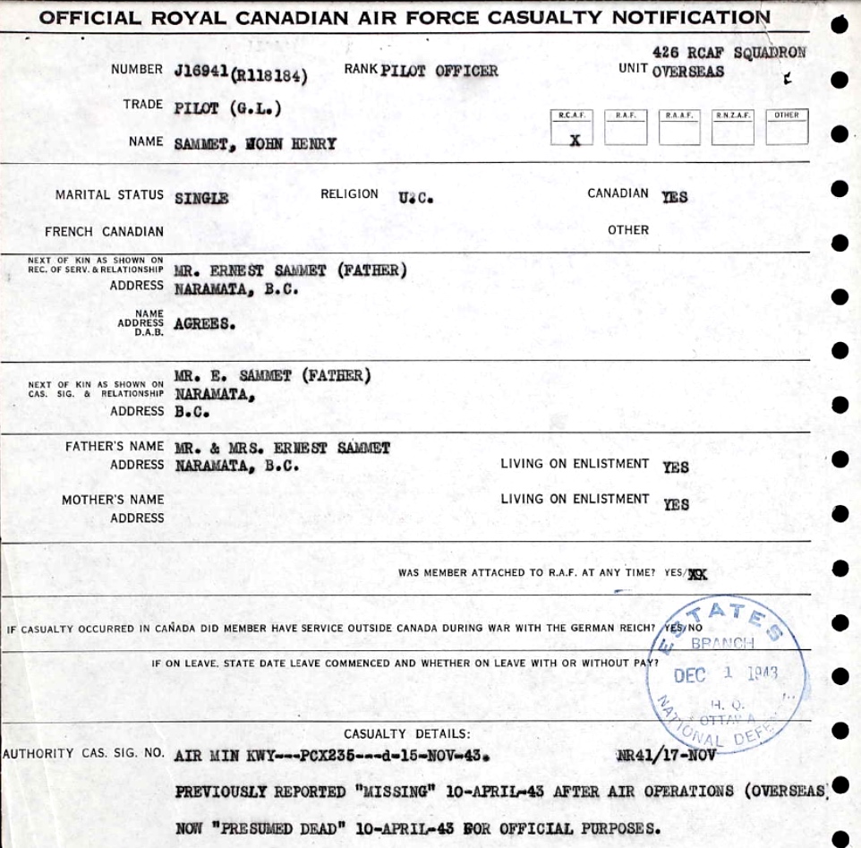 Digital gallery of Pilot Officer John Henry Sammet