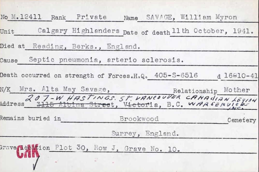 Page 43 of the Second World War Book of Remembrance.
