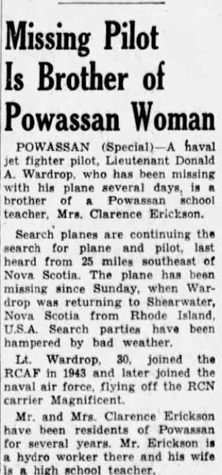 Son of the late Walter and Maude Lillian Heloise (nee Corregan) Wardrop of St. Vidal, Manitoba. Husband of Sylvia Wardrop and father of Walter Wardrop of Seven Sisters, Manitoba. Brother of Howard, Alice, June and Margery.