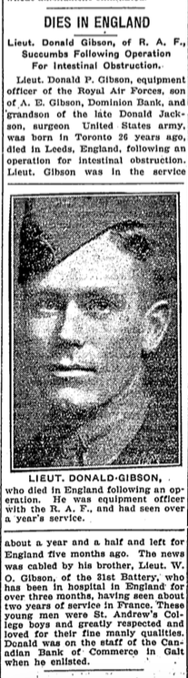 Son of A. E. and Annette J. Gibson, of Briarcliffe, Oakville, Ontario.