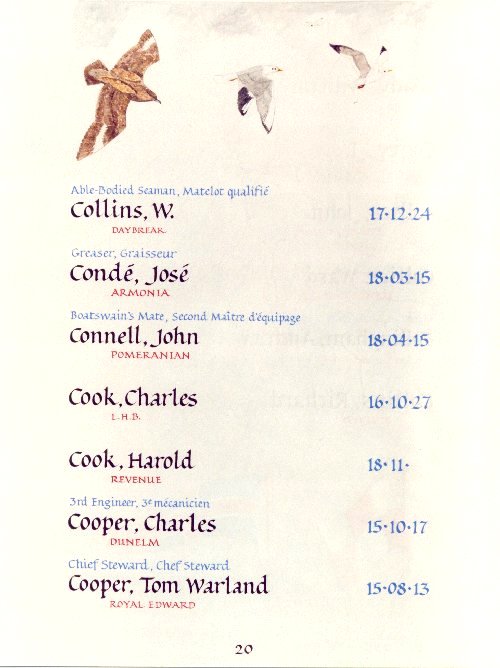 Page 20 of the Merchant Navy Book of Remembrance.