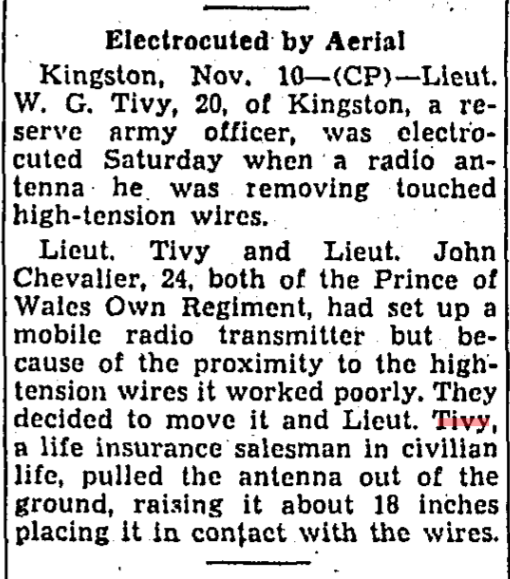 Son of William Henry Tivy of Kingston, Ontario.
