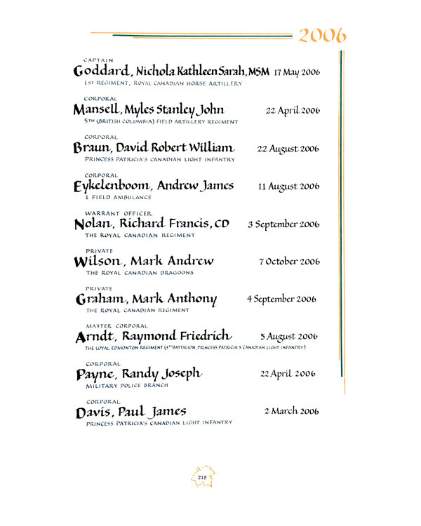 Page 219 of the In the Service of Canada, Vol. I (1947 – 2014) Book of Remembrance.