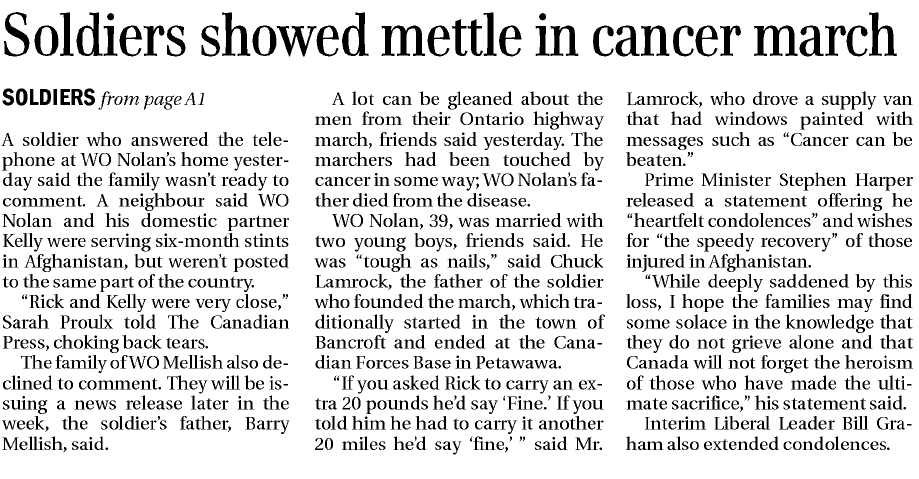 Son of Maureen Agnus Nolan. Common-law of Kelly Anne Dove. Father of Richard Ryan, Jamie David and Rodney Thomas and stepdaughter Kristen. He arrived six weeks before his death, in Afghanistan. Served in Kosovo. Grew up in Mount Pearl, Newfoundland