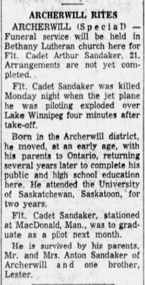 Son of Anton Theodore and Lillian Margrethe (nee Pederson) Sandaker of Archerwill, Saskatchewan. Brother of Lester Sandaker.