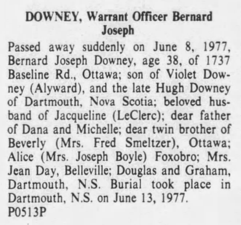 Digital gallery of Warrant Officer Bernard Joseph Downey