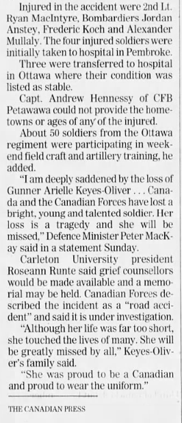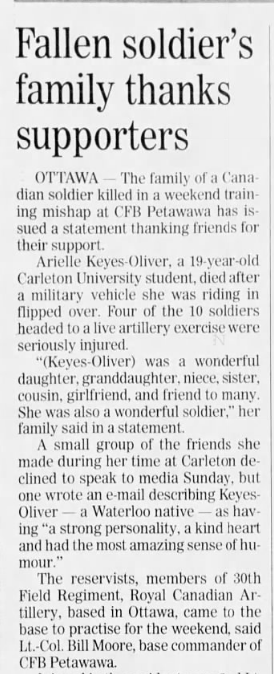 Daughter of David Oliver and Diane Keyes-Oliver of Waterloo, Ontario. Granddaughter of Cathy Richardson.