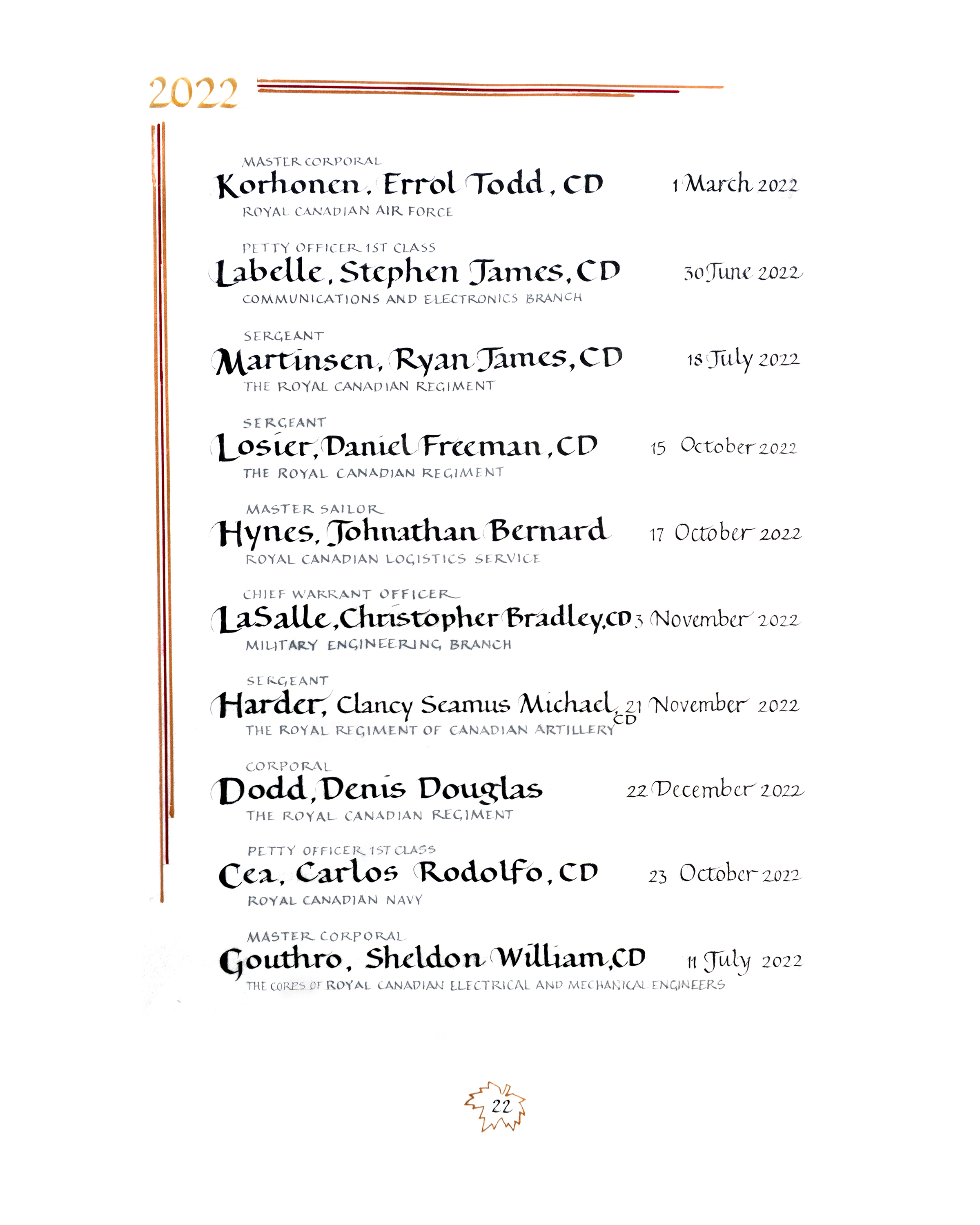 Page 22 of the In the Service of Canada, Vol. II (2015 – ) Book of Remembrance.