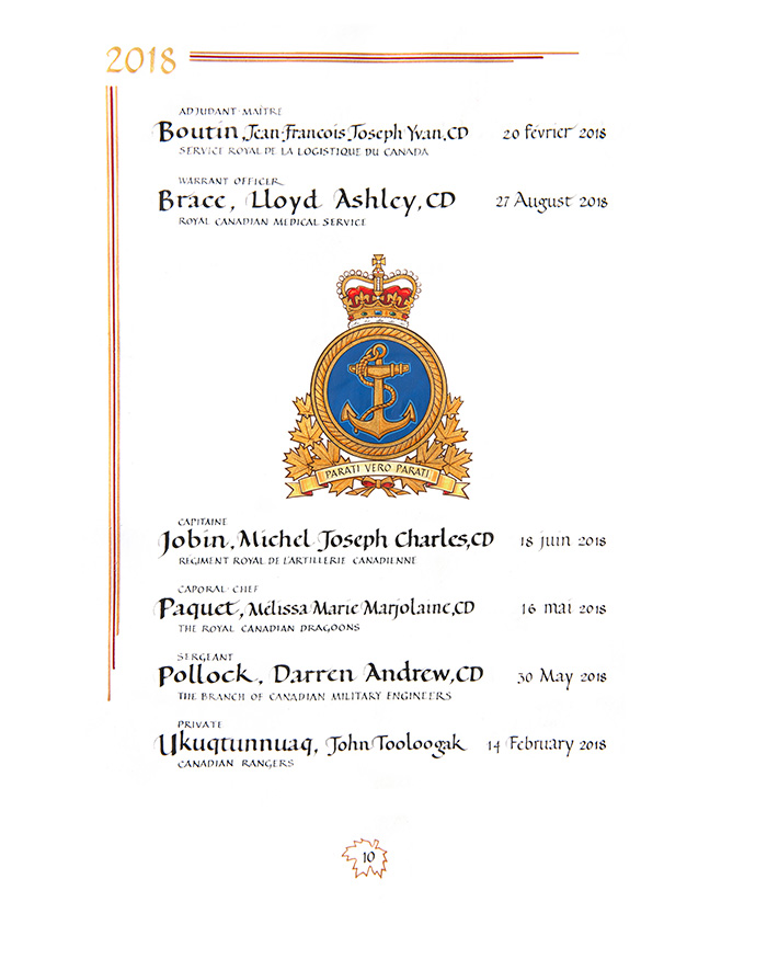 Page 10 of the In the Service of Canada, Vol. II (2015 – ) Book of Remembrance.