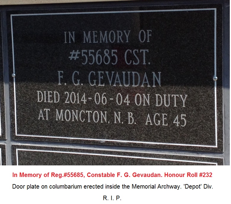 Prior to joining the Force, Cst. Gevaudan worked as a motorcycle mechanic, waiter and security guard. Cst. Gevaudan was posted to Codiac Detachment where he worked in General Duty Policing.