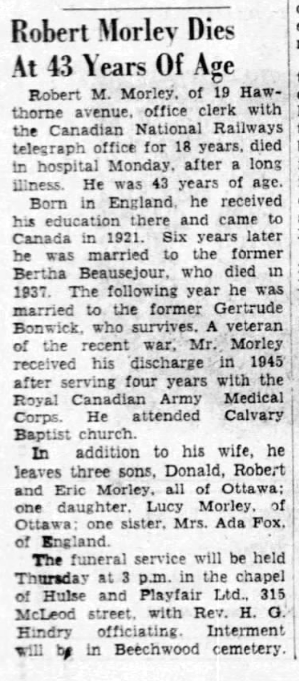 OTTAWA (BEECHWOOD) CEMETERY contains 98 Commonwealth burials of the First World War and 113 from the Second World War. Many of the graves are in the two veterans plots, where there is also a Cross of Sacrifice dedicated to all service casualties buried in the cemetery.