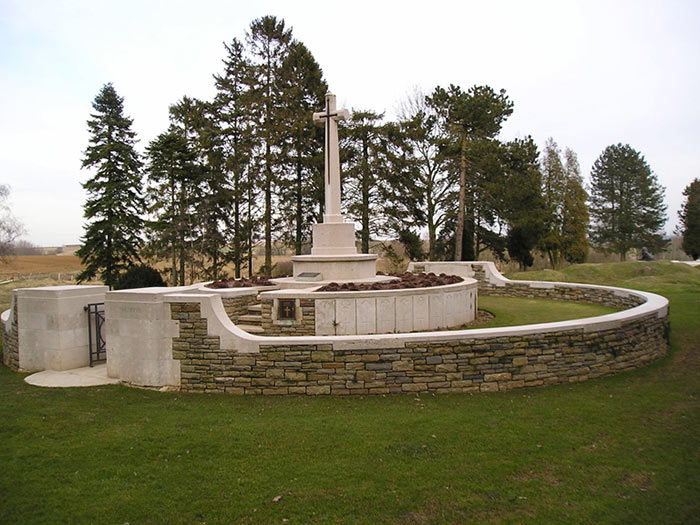 The cemetery was established in a large shell hole where soldiers of the 51st (Highland) Division who died during the Battle of Beaumont-Hamel were buried.