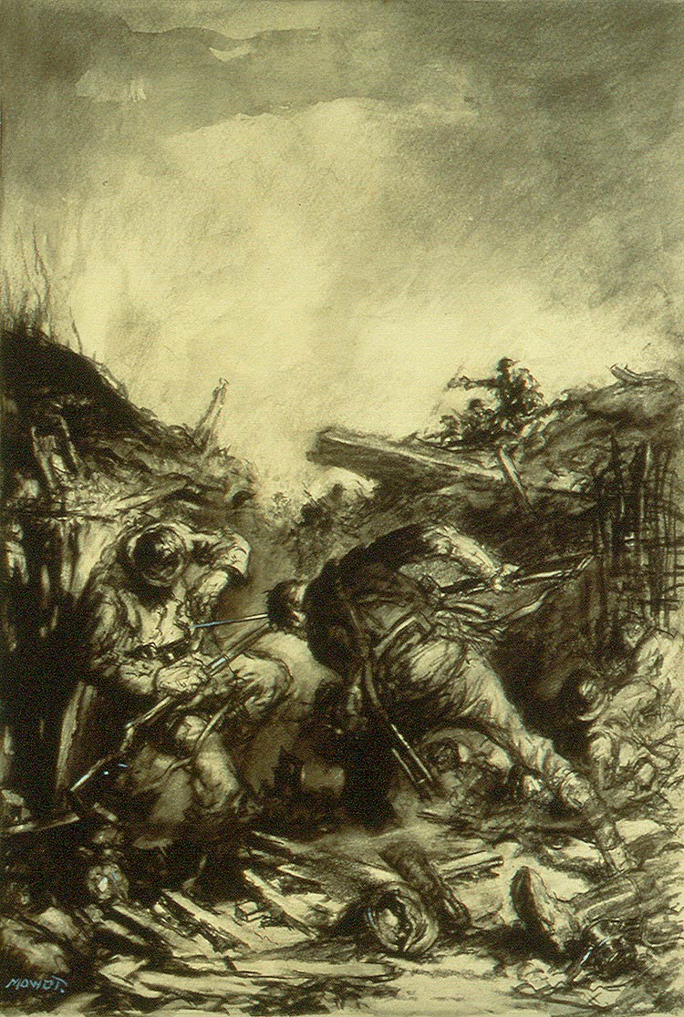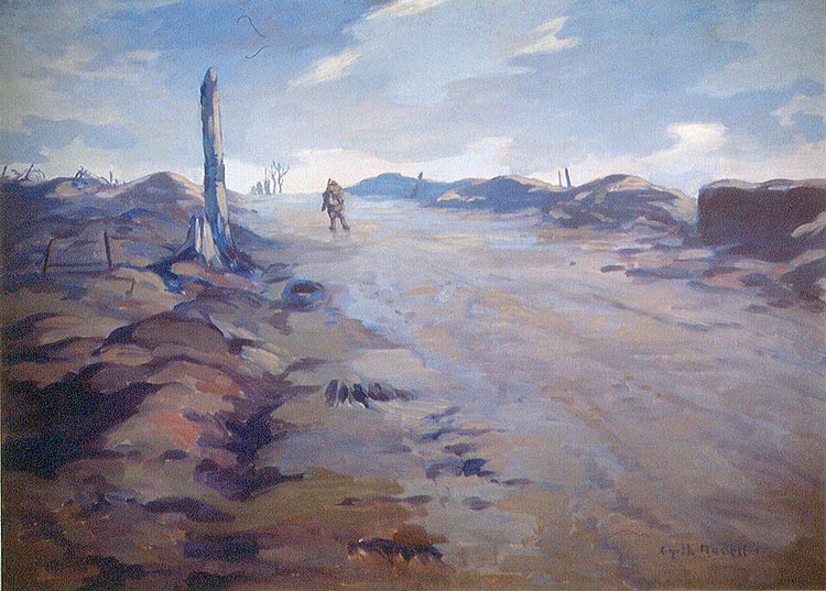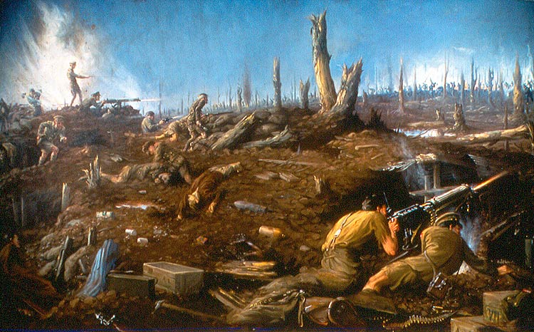 Life for soldiers in the trenches was miserable. They were often muddy and cold and had to live in the midst of pests like rats, lice and fleas. In this form of warfare, soldiers faced the enemy across a narrow strip of land between the opposing trenches. This was a harsh "No Man’s Land" of mud, barbed wire and shell craters, swept by machine gun fire, and menaced by artillery and snipers. This is what soldiers had to cross when they went "over the top" and launched an attack. The dead and injured who fell in No Man’s Land often could not be recovered.