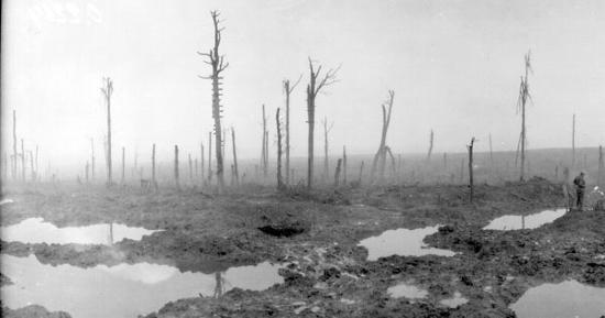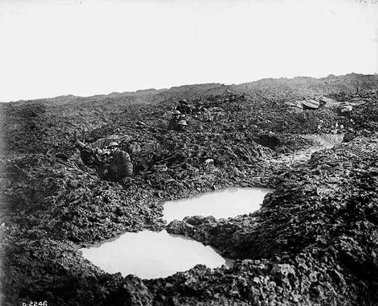 Personnel of the 16th Canadian Machine Gun Company holding the line in shell holes during the Battle of Passchendaele. Photo: William Rider-Rider / Library and Archives Canada / PA-002162