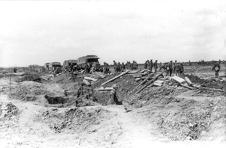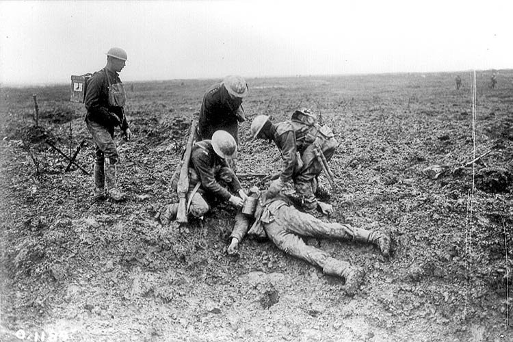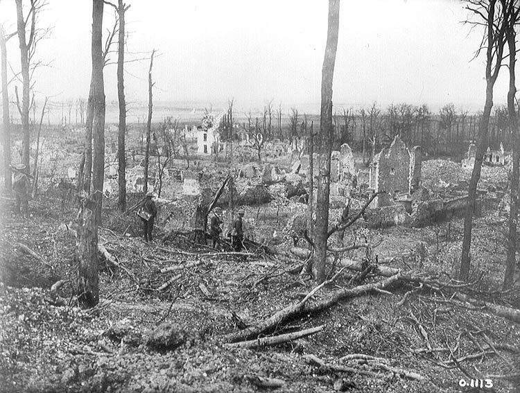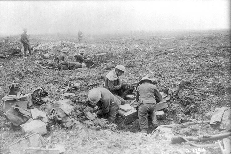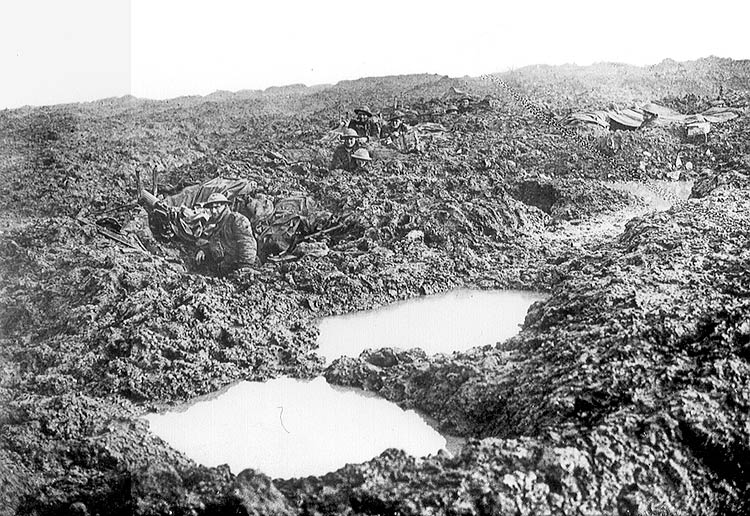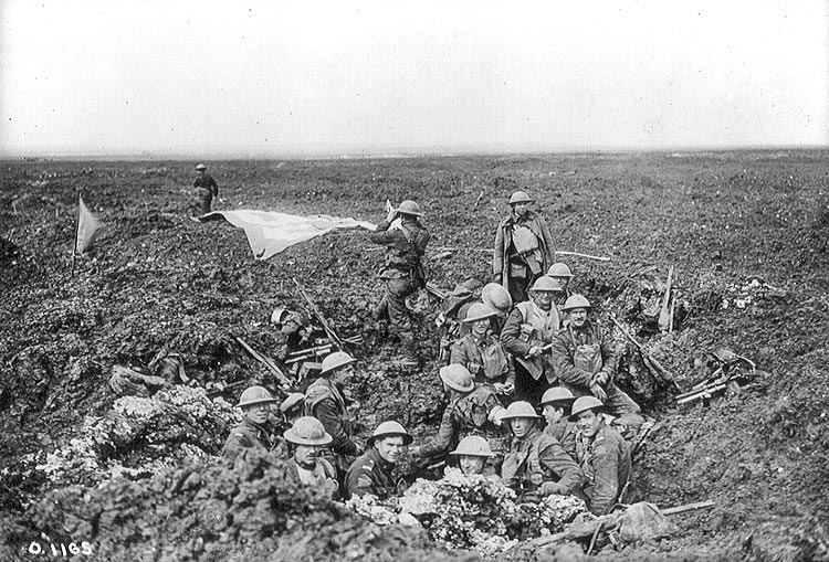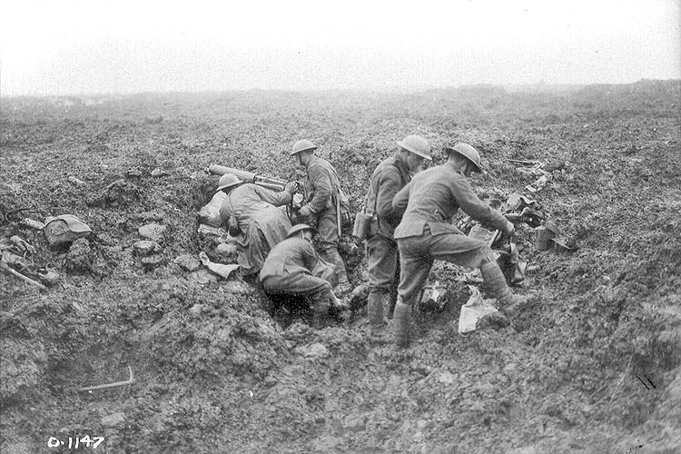 Bodies of the fallen lay in the mud after paying the ultimate price...(The battlefield after a Canadian charge. Library and Archives Canada.)