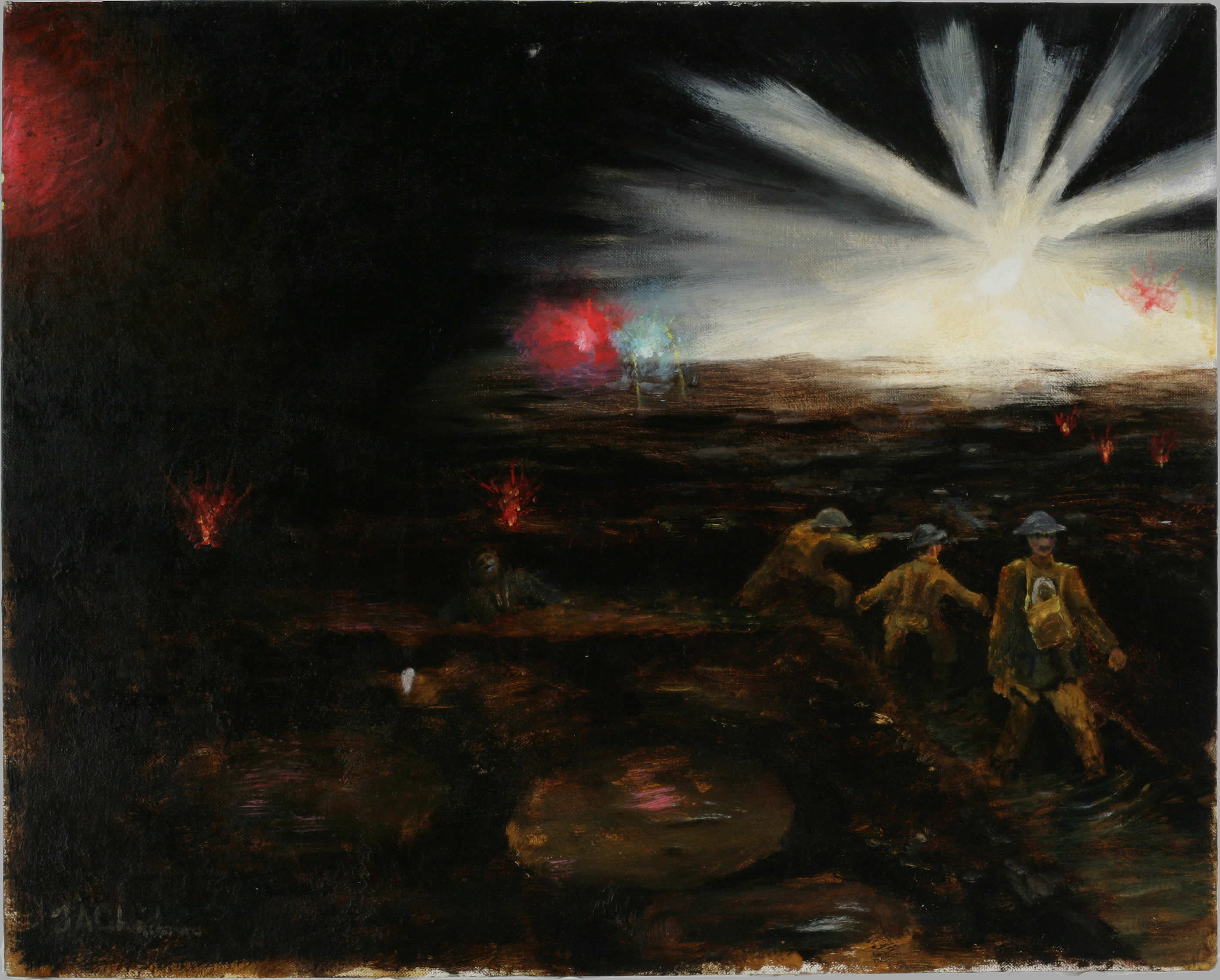 Flares, or star shells, were fired from a gun as signals between troops, or to light a section of No Man's Land at night so that enemy patrols or activity could be detected. The flares were usually followed with intense machine-gun fire.