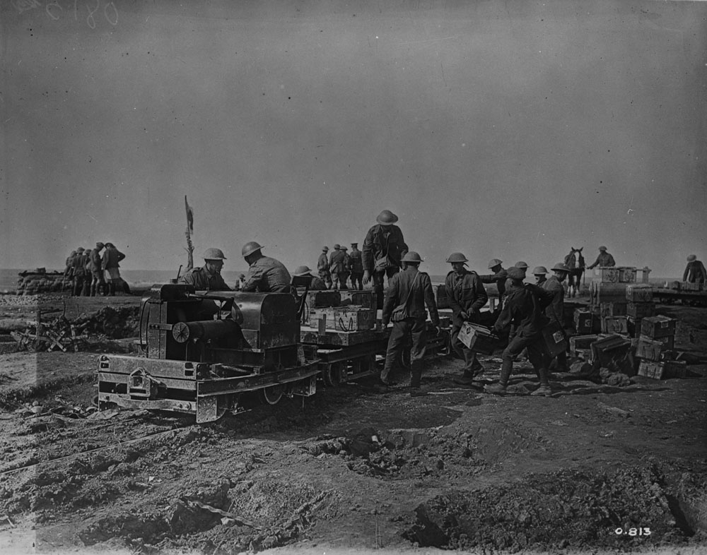 Railroads were used to transport troops, ammunition, food, water and other supplies to the front lines, as well as wounded soldiers from the front to medical aid posts. Supplies were loaded onto trains and pulled by small locomotives.