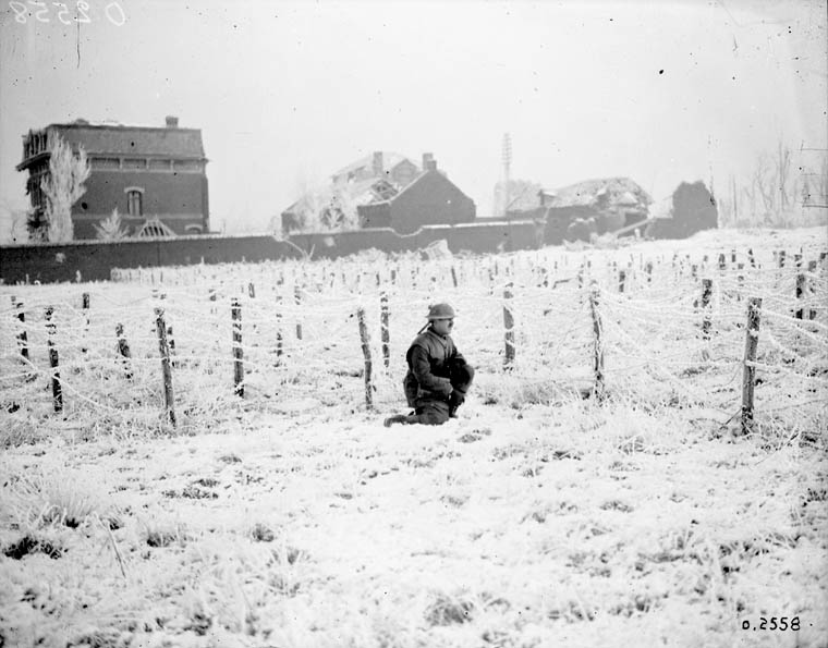 In this form of warfare, soldiers faced the enemy across a narrow strip of land between the opposing trenches. This was a harsh "No Man’s Land" of mud, barbed wire and shell craters, swept by machine gun fire, and menaced by artillery and snipers. This is what soldiers had to cross when they went "over the top" and launched an attack.