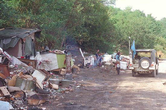 A jeep driven by Sergeant Robert Huard of the 1st Battalion of the Royal 22e Régiment arrives at the dump where the families of Daruvar, Croatia live. Photo: Department of National Defence