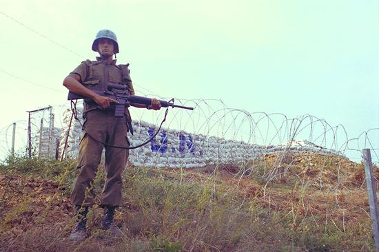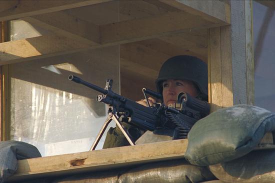 Corporal Richard Néron provides security at an observation post in Srebrenica. Photo: Department of National Defence
