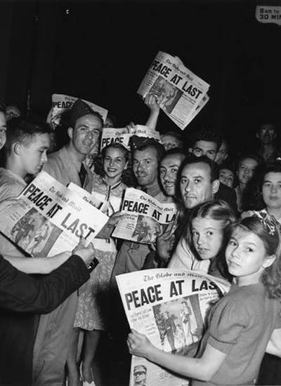 Meanwhile, preparations continued for the Canadian contribution to the invasion of the Japanese Home Islands planned for the fall of 1945. A complete infantry division and several air squadrons were being readied - a force of more than 24,000. All preparation stopped when the atomic bombs were dropped on Japan, causing the Japanese to surrender unconditionally on August 15, 1945. The shock of this new instrument of war was mixed with the joy of peace and the knowledge that no more Canadians would have to die in one of the most terrible wars in history.