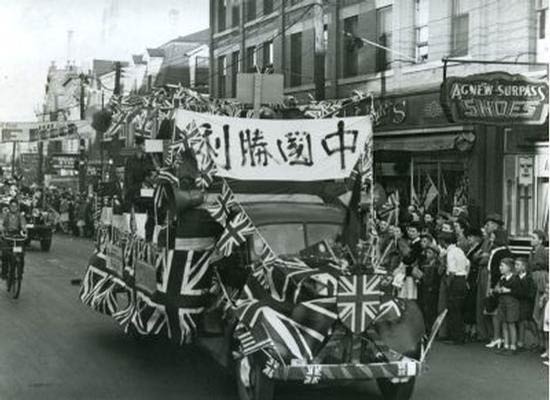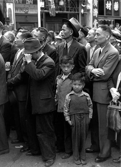 Watching the parade in Chinatown, Vancouver, British Columbia (August 15, 1945). Photo: City of Vancouver Archives/Jack Lindsay CVA 1184-3046