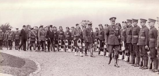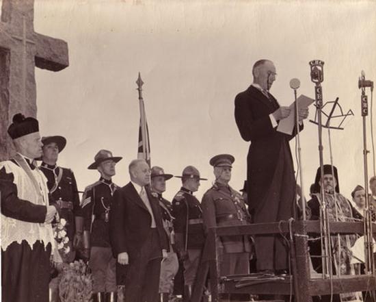September 21, 1930 - Consecration of the National Field of Honour, Pointe-Claire, Québec. Brigadier-General W.B.M. King inspecting the Guard of Honour.