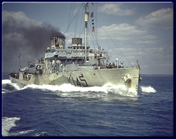 RCN ships also served in different ways during the war. They fought against the Japanese in the Pacific and took part in other kinds of military operations in the waters off Europe, like patrolling and mine sweeping in the English Channel and supporting Allied landings in Normandy, Sicily, mainland Italy and southern France.
