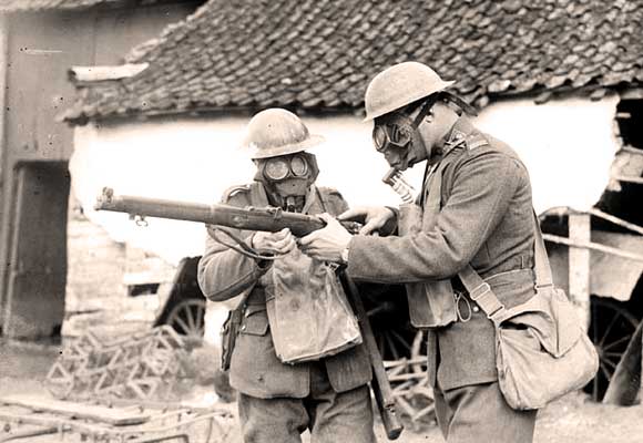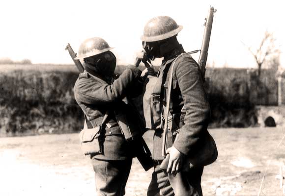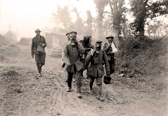 Allied troops were given gas masks to protect against chlorine gas attacks. However, the masks could not protect them against mustard gas used later in the war, which burned the skin, caused severe breathing problems, and could cause blindness.