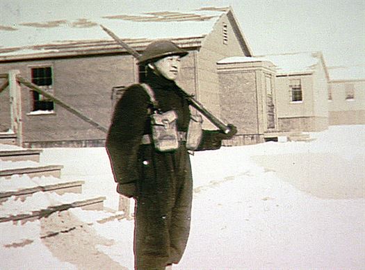 After basic training in Halifax, I think it was three months basic training in Halifax in the winter. Oh, was it cold there. I'll have to tell you a funny story about that, about Halifax. I... I heard, we were issued four blankets and ... we had a pillow and ..., but even one blanket below and three blankets on top, I was still cold. Then I remembered ... hearing somebody saying that maybe you should put paper, newspaper in between the blankets and you'll stay a lot warmer. And that's what I did one night and then next day I was hearing some... some soldiers next to me saying that, "What was all that rustling last night? I couldn't sleep at all. " I was... I thought well maybe... maybe I better not put anymore newspaper into... in between the blankets (laughs).