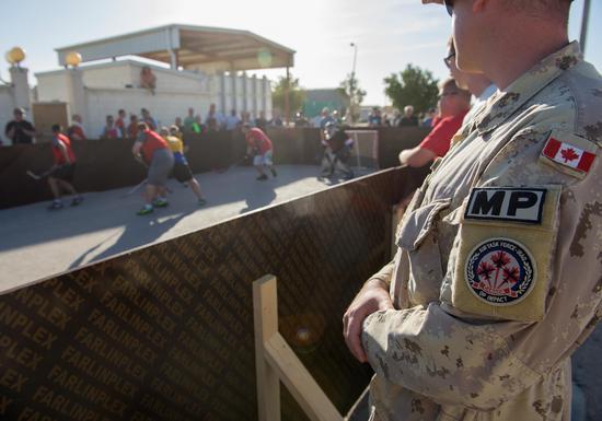 During the post-war years, many military bases across Canada built rinks to allow soldiers, sailors and airmen to play hockey for recreational and training purposes. Not surprisingly, the old military-hockey connection has continued in more recent times. Hockey sticks are sometimes packed when Canadian troops deploy in conflict zones. For example, in Kandahar, Afghanistan, where temperatures often reach 40°C, Canadian Armed Forces members built ball-hockey rinks. They played mostly at night, when the cooler temperature allowed for a faster-paced game. Former NHL players and celebrities like Guy Lafleur, Lanny MacDonald, Bob Probert and Don Cherry even went overseas to visit the troops, some of them playing exhibition games in mixed teams made up of hockey legends and serving members. But a hockey game wouldn’t be the same without referees, so former NHL officials were also on site to oversee the game!