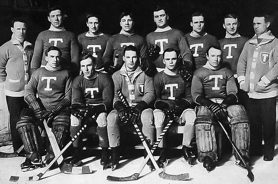 Conn Smythe of Toronto played on the University of Toronto hockey team until the First World War interrupted his studies. A week after winning the Ontario Hockey Association championship in 1915, he and eight teammates enlisted. Smythe served in the Canadian Artillery where he earned the Military Cross. He transferred to the Royal Flying Corps in 1917 and was an airborne observer until being shot down and captured. Despite two escape attempts, he spent more than a year in a German prisoner of war camp.