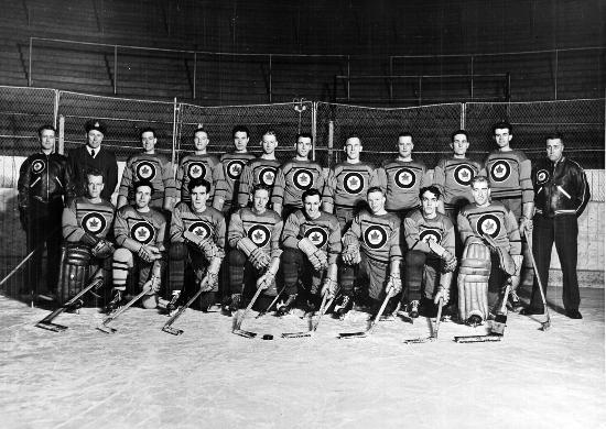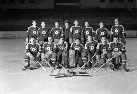 Winnipeg Rifles hockey team during the playoffs in 1942.