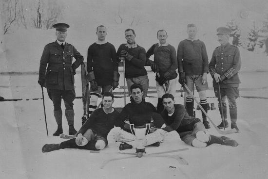 Champion hockey team among the Canadians interned in Switzerland in 1917.