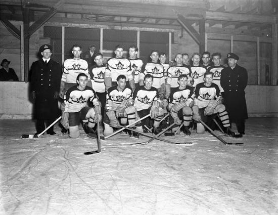 Royal Canadian Navy hockey team in Halifax, Nova Scotia in 1943.