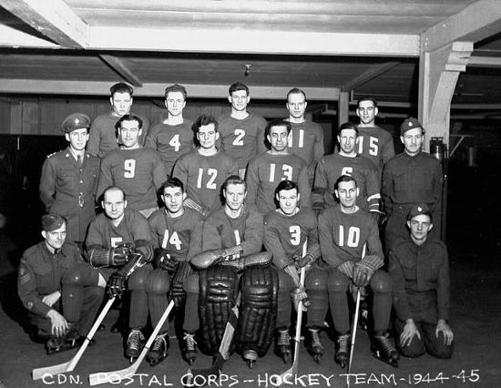 Some players, like Maurice “Rocket” Richard, could not enlist because of injuries they had received during their hockey careers. Other players enlisted but did not make it to the front lines. Having them play hockey either in Canada or in military camps overseas proved to be a pillar of strength for both civilians and the military. Highly competitive regimental hockey teams were formed, serving such purposes as keeping the men fit and entertaining the serving members on military bases.