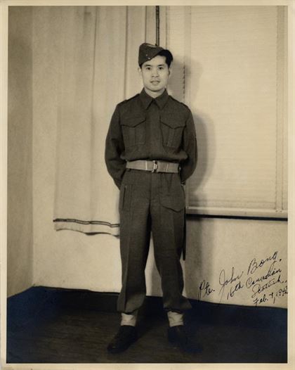 Eighteen year old Alex Louie toiled in a BC pulp mill before he volunteered for active service.