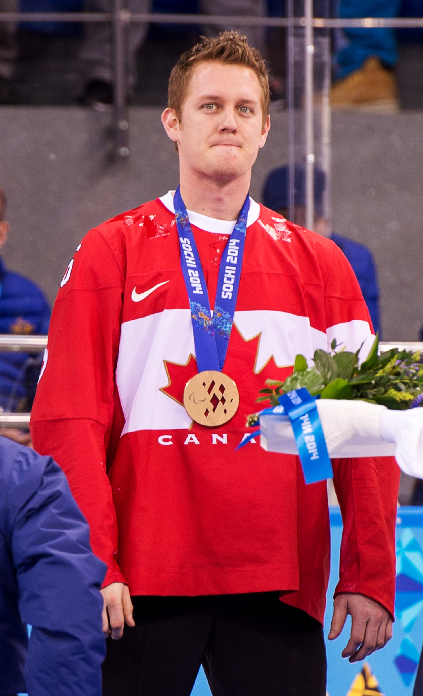 Dominic Larocque receives his Bronze medal in Sledge Hockey at the 2014 Paralympic Winter Games in Sochi, Russia.