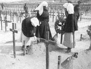 At first, the nursing needs identified were for home duties such as making bandages and preparing medicinal and food supplies. Members of societies, such as the Red Cross, were advised to volunteer as nurses should the need arise. It soon became apparent that more direct participation by nurses was needed if the military was to provide effective medical field treatment. A total of seven nurses, under the direction of Reverend Mother Hanna Grier Coome, served in Moose Jaw and Saskatoon, Saskatchewan. Although their tour of duty lasted only four weeks, these women proved that nursing could, and should in the future, play a vital role in providing treatment to wounded soldiers.