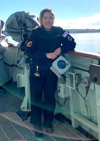In 2015, six years after enlisting, she officially left behind her Naval Cadet rank and climbed her way to Lieutenant while working in CFB Esquimalt in Victoria, BC. Two years later, she was sent to join HMCS Winnipeg while the ship was already sailing in southeast Asia. She recalls, “I got a call and was told ‘it’s your time to go to the ship. How fast can you pack your bags and go to her first port of call?’ I said ‘fast enough’. ‘You’ve got three days’.”