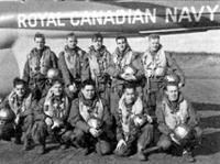 A specialist in anti-submarine techniques, Ted Jamieson instructed sailors aboard the Iroquois during the Korean War. He later joined a helicopter anti-submarine squadron. Jamieson is in the front row, centre, of the photos of the sonar aircrewmen of the 50th Squadron. (George C. Apps / Library and Archives Canada / PA-146296)