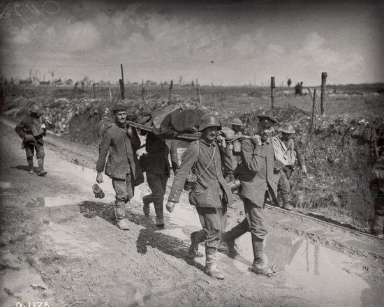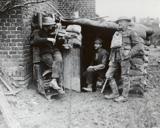 Life for soldiers in the trenches was miserable. They were often muddy and cold and had to live in the midst of pests like rats, lice and fleas. In this form of warfare, soldiers faced the enemy across a narrow strip of land between the opposing trenches. This was a harsh "No Man’s Land" of mud, barbed wire and shell craters, swept by machine gun fire, and menaced by artillery and snipers. This is what soldiers had to cross when they went "over the top" and launched an attack. The dead and injured who fell in No Man’s Land often could not be recovered.