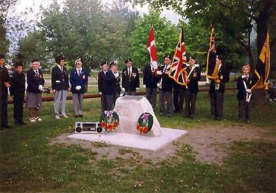 This memorial was erected by Royal Canadian Legion Branch No. 74. It was constructed in 1992 in honour of veterans of Vimy Ridge.