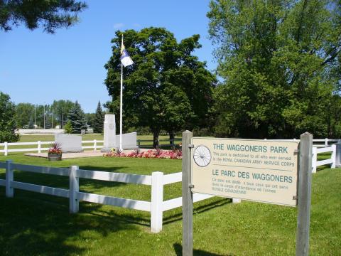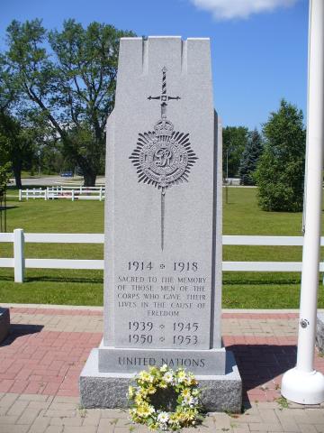 This memorial is dedicated to the men of the Royal Canadian Army Service Corps who fought in the First and Second World Wars and the Korean War. It was erected by the Royal Canadian Army Service Corps.