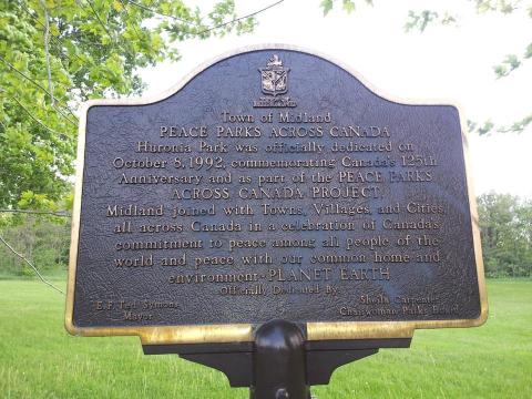 Huronia Park, now Edgehill Park, was designated as Midland's "Peace Park" as part of Canada's 125th Birthday in 1992.