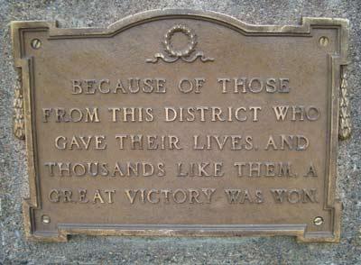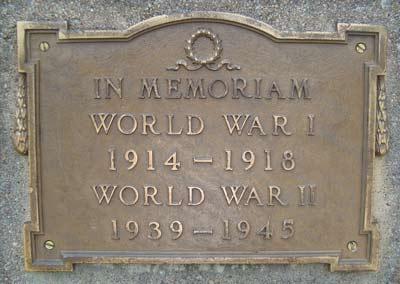 This memorial was erected by William Hebert, Ronald Delaney, local general contractors assisted by Randy Beckwith. Unveiled on September 2, 1947, this memorial was dedicated to the seven local men killed in action in World War II and to those who gave their lives in World War I.