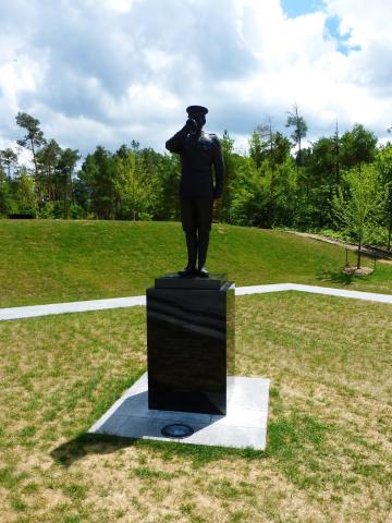 The third piece is a Bronze Bugler stands in the park, calling to his companions, calling visitors to the monument, and calling to the now-empty trenches that once trained soldiers before they left for battle overseas.